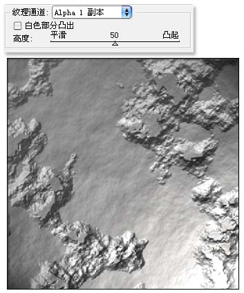 5、继续执行“光照效果”滤镜,“纹理通道”选择为“Alpha1副本”通道。